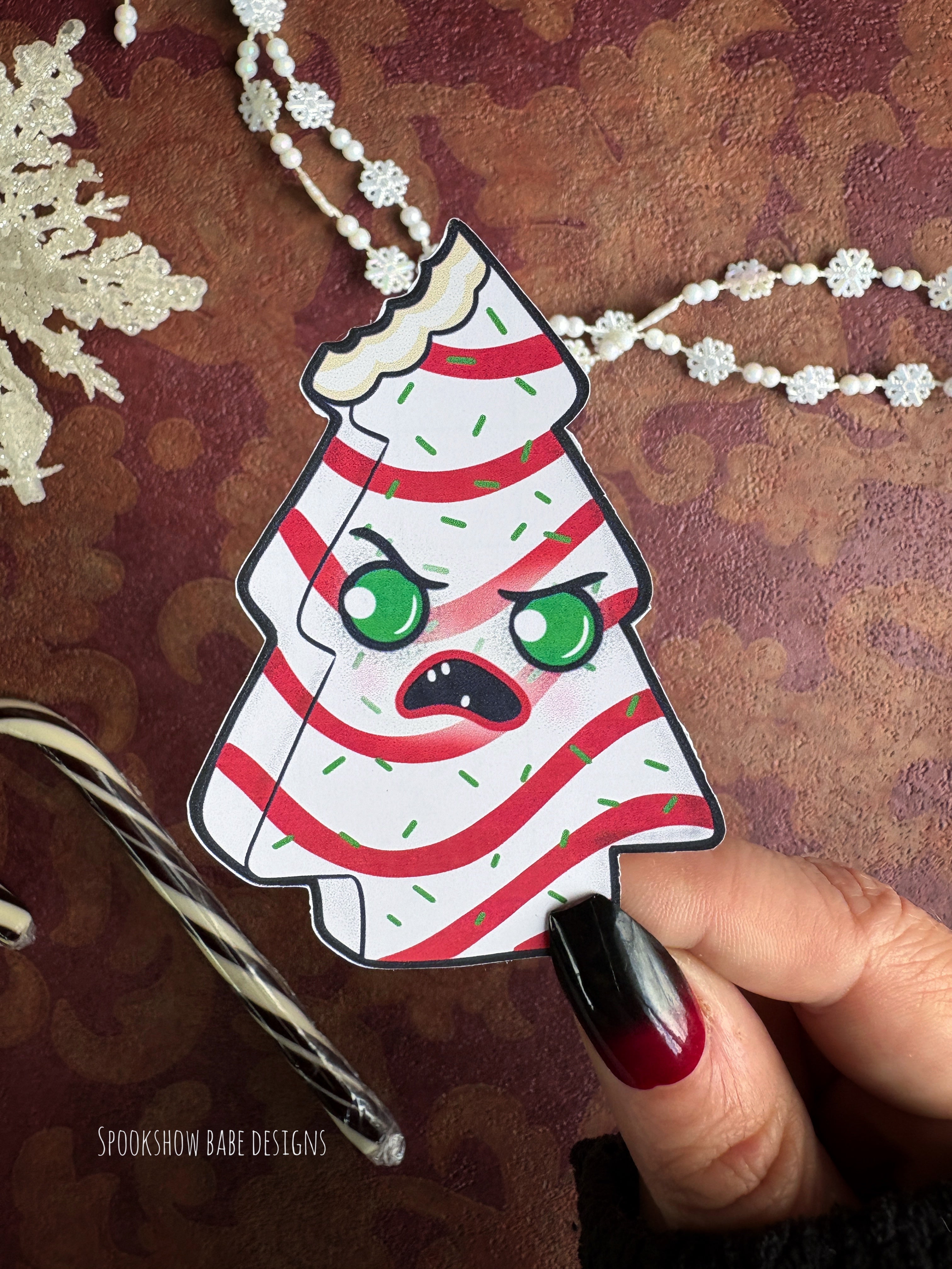 These angry little Christmas Cake sticker is a fun and spooky sweet way to decorate your holiday cards, gift tags or planner this season!